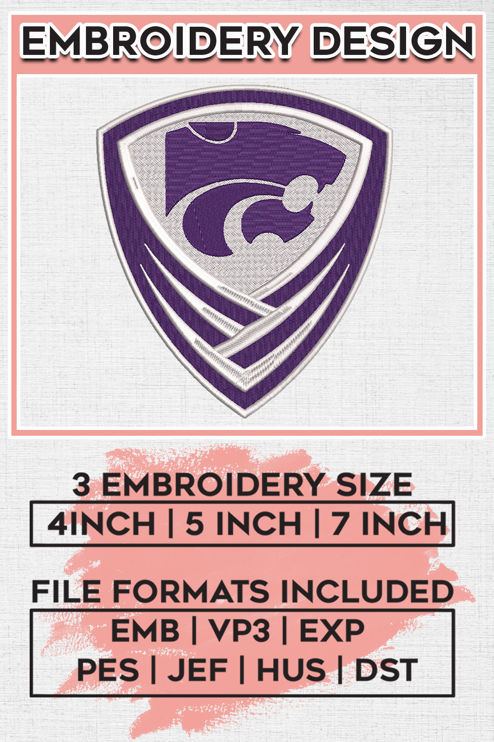 NCAA Kansas State Wildcats College Football Team Logo Embroidery Designs, NCAA Kansas State Wildcats Machine Embroidery Files, NCAA Logo embroidery designs, NCAA Kansas State Logo, Digital Download