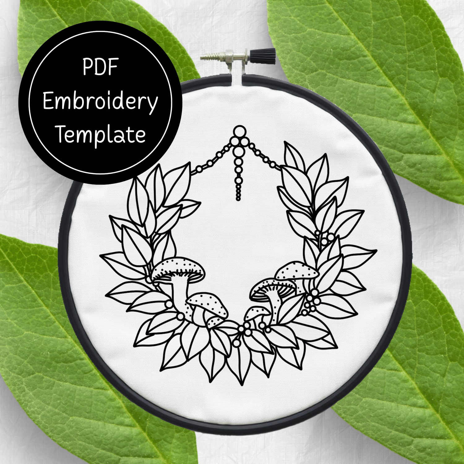 Make this Boho Mushroom Wreath Pattern come alive with your choice of colors and stitches to create this simple embroidery template.