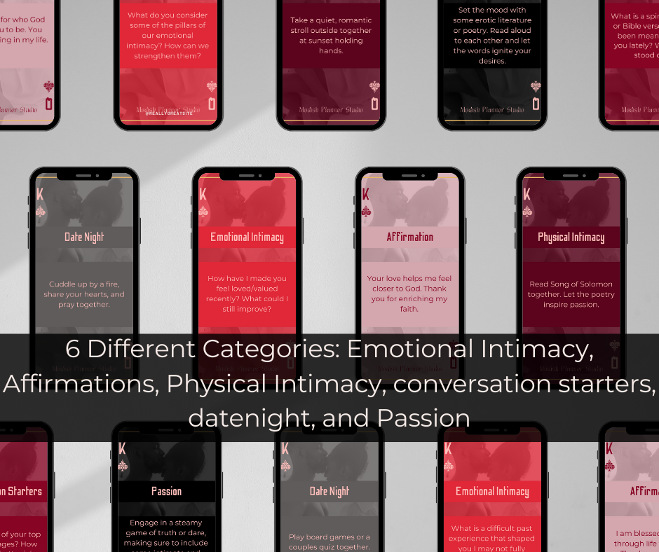 - Categories cater to emotional, physical, and intimate aspects of your relationship.