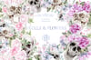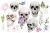 This watercolor Skulls & Flowers set consists of 53 watercolor PNG elements. They include patterns, bouquets with skulls and elements.