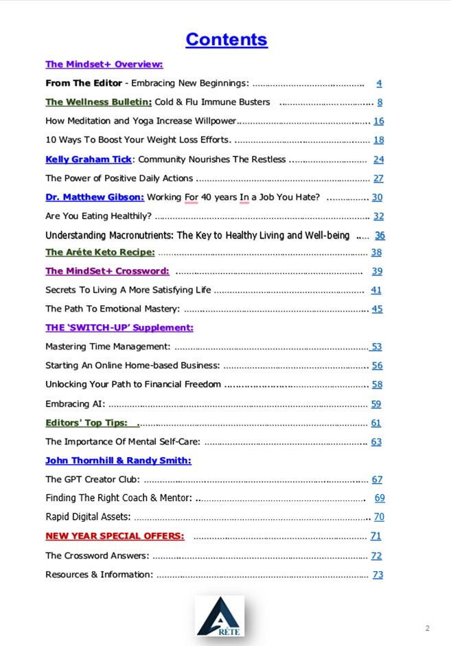 Areté Members Club. As a member, you will gain exclusive access to professional e-courses, programs, and products, including the latest PLR offerings to keep you at the forefront of your field. You’ll also receive regular updates and insights from The MindSet+, delivered straight to your inbox.