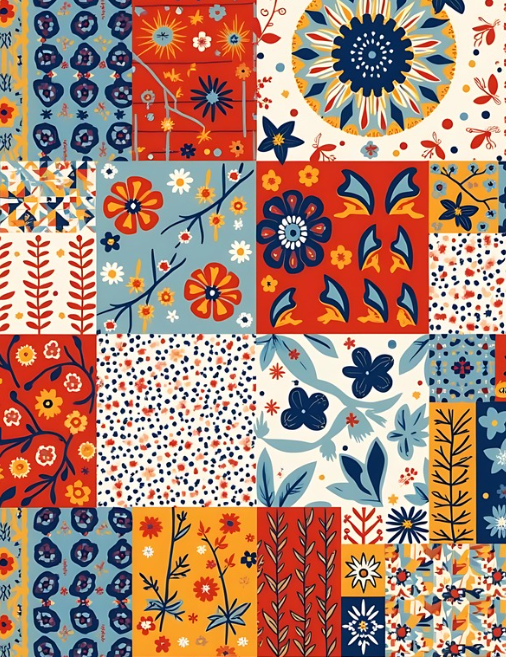 Pull out your scissors and glue and dive into the magical world of patchwork scrapbook papers with 54 glorious pages of patchwork designs in beautiful styles. There are pastels, bright colors, traditional, country and modern styles included. There is a different pattern on the front and back side of each page. All patterns feature patchwork themes.