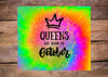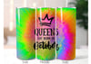 Neon Tie Dye Queens are Born in October, 20 oz Tumbler Design with Gold Glitter, Instant Download