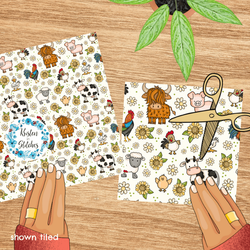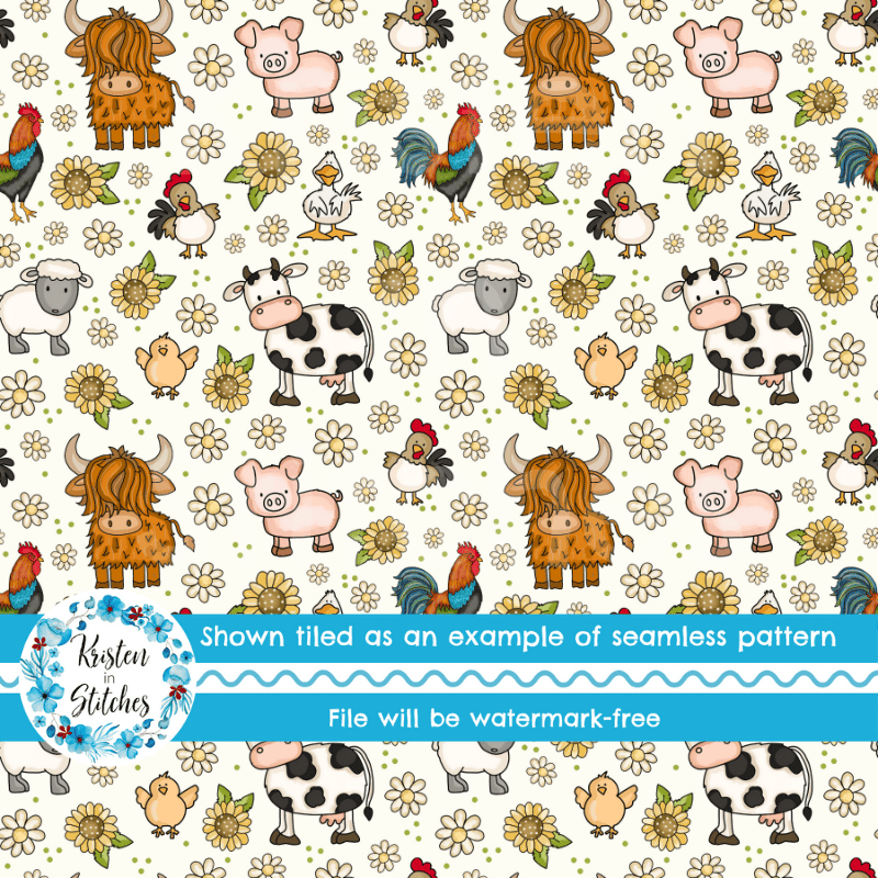 Farm Animals Seamless Pattern, Nursery Floral, Ivory