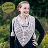 This shawl includes a couple of lace motifs that are simple in technique once you’ve tried them, but they do require attention in knitting. They include SSK, KSP, S2KP2, and other similar stitches. All lace techniques include linked video tutorials, but I recommend that you feel confident in your knitting before working this pattern.