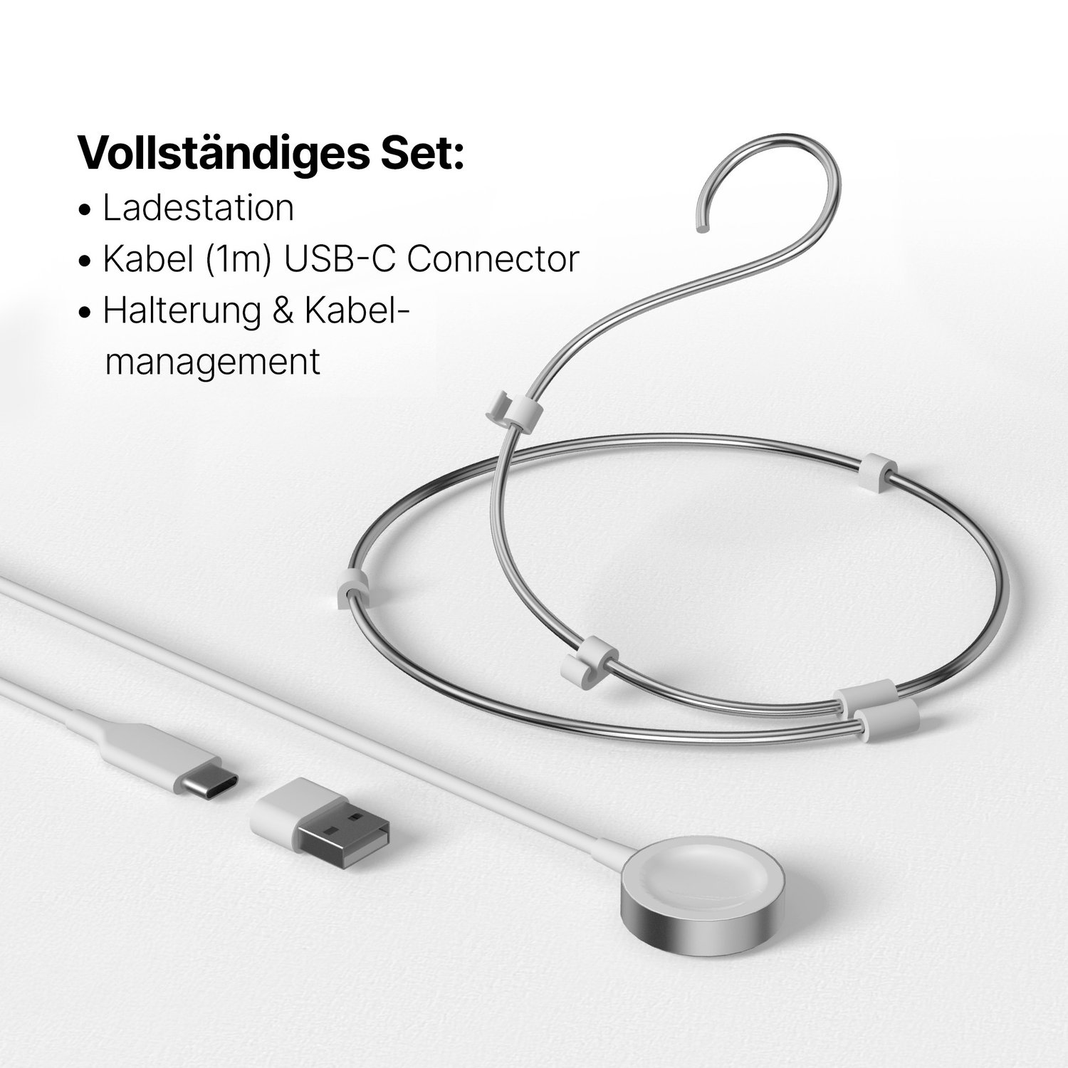 Unsere Ladestation vereint Design und Technik in einer eleganten Spirale. Minimalistisch, innovativ und nachhaltig – lade deine Uhr stilvoll auf.