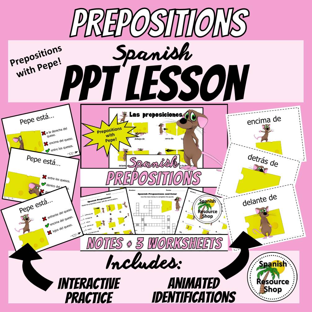 ๐ช๐ธ Spanish Prepositions | PowerPoint Lesson, Notes & Worksheets | Animated & Interactive