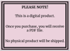 This is an instant digital PDF printable file. NO physical item will be shipped to you.