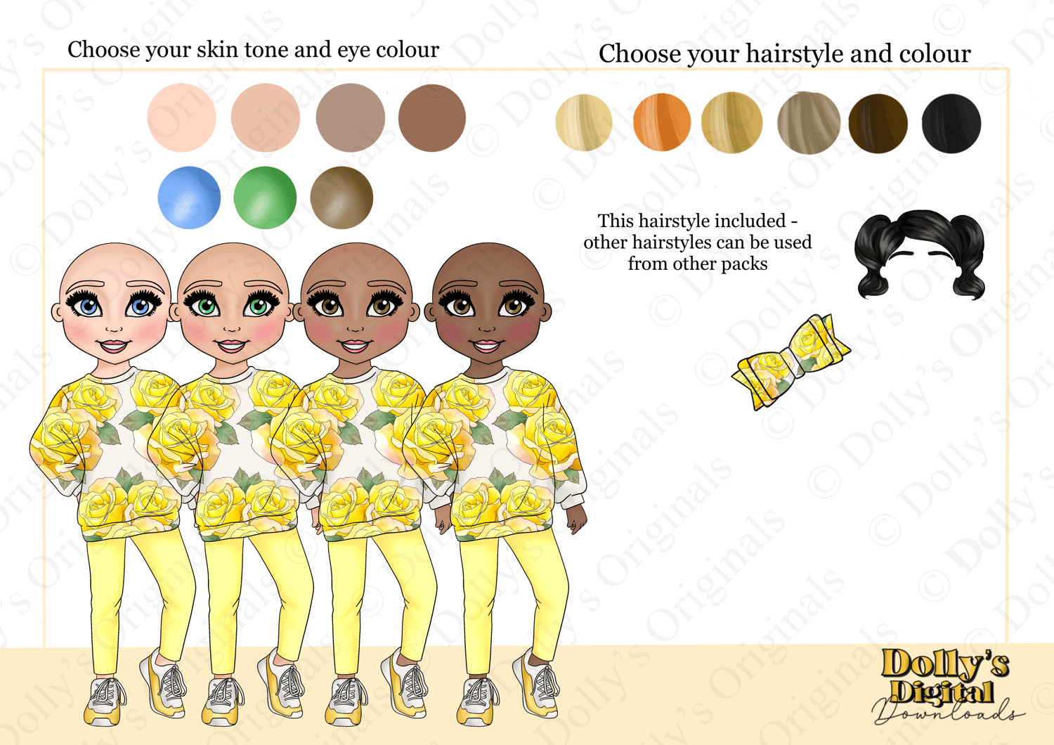 Instant digital download of our Yellow Rose Print Jumper Toddler Girl Bundle PNG (19 PNG’s)