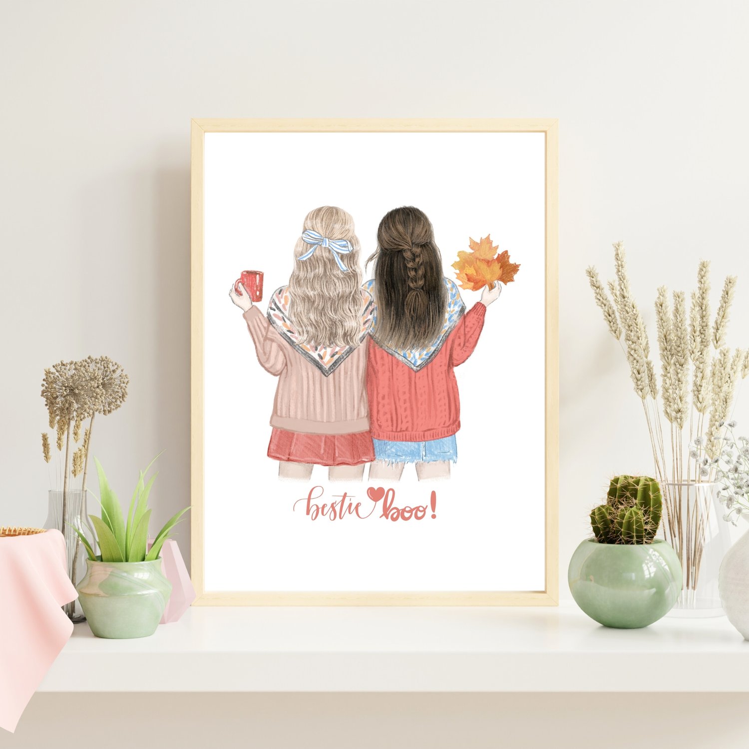 Bestie Boo: Custom BestFriend Portrait, Faceless Art, Personalized Friendship Gift, Bestie Illustration, Fall Theme, Unique Gifts for Best Friends