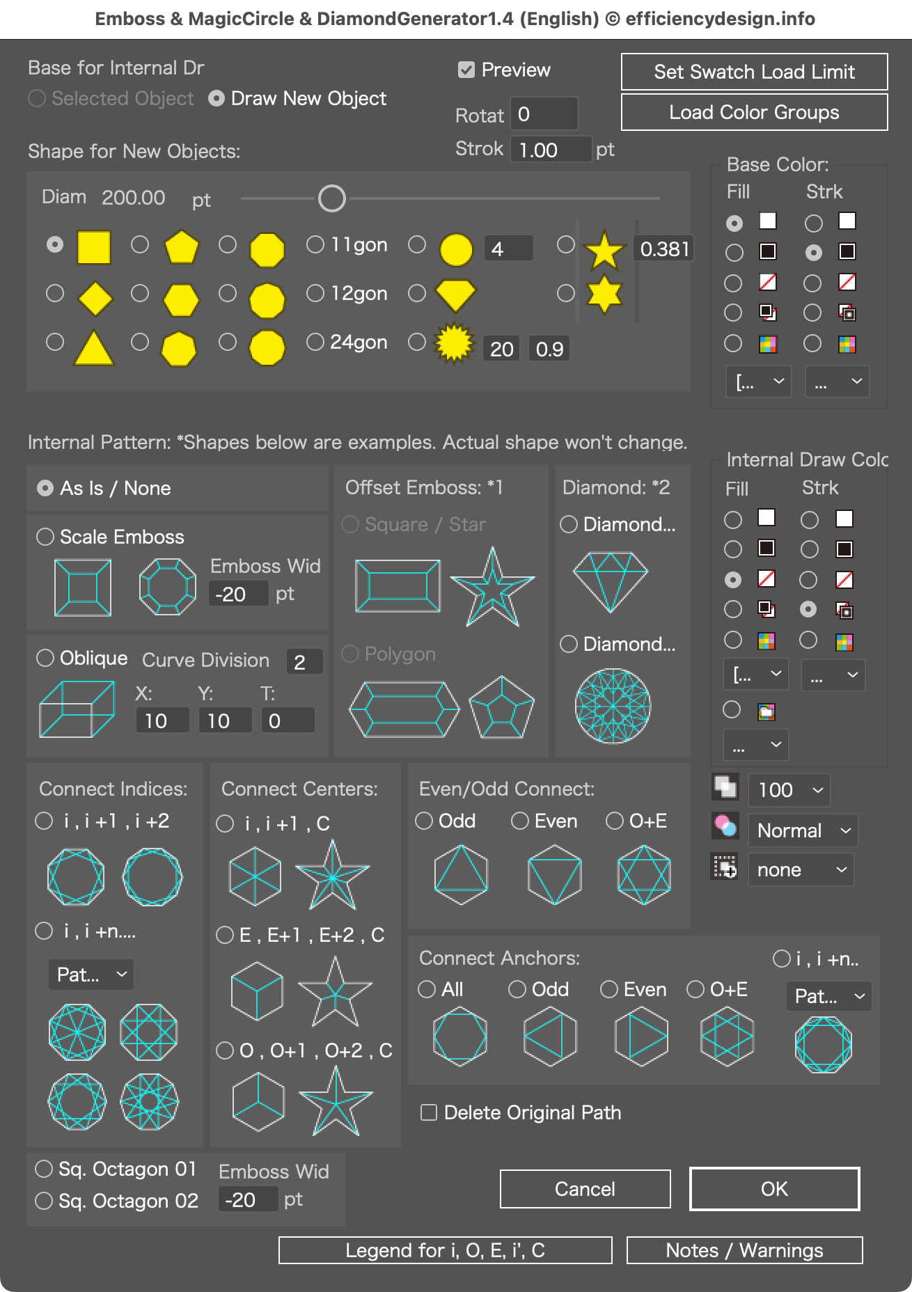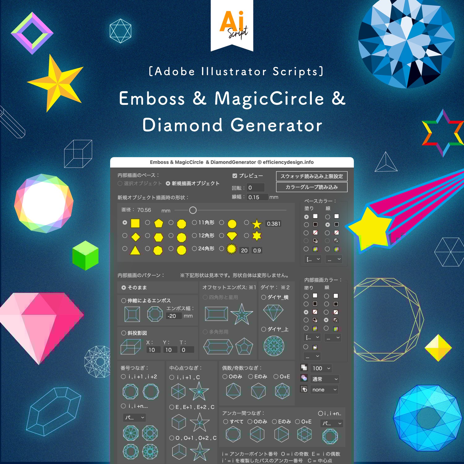 Emboss, Magic Circle & Diamond Generator [Adobe Illustrator script]