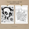 Enjoy 75 pages of soothing summer calm—mushrooms, waves, florals, faces, and whimsical scenes invite your mind to rest and wander.