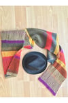 Approximately 7 balls with 200 meters/219 yards each of worsted weight yarn; 1 each in purple, tan, red, copper, yellow, grey, and olive colours (I used Rowan Pure Wool Superwash Worsted in 121 Morello, 104 Toffee, 106 Rust, 132 Buttercup, 135 Papaya, 111 Granite, and 128 Hazel.)