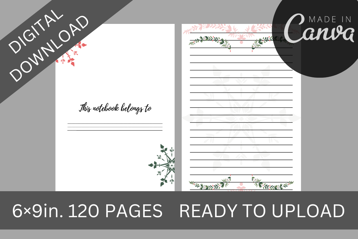Improve your mental health by getting your desires, emotions, fears, and positive self affirmations out on paper. This journal interior is the first step in boosting your mental health and it's so cute you won't want to put it down. It is a 6" X 9" lined paperback Christmas notebook with 120 white pages and each page contains a header for titles or dates. This interior is perfect for creating professional-looking interiors for journals, notebooks, and other low-content books that require lined pages. This interior is fully formatted, ready to upload and compatible with Kindle Direct Publishing (KDP) guidelines, ensuring that your book will meet the requirements for publishing on KDP.