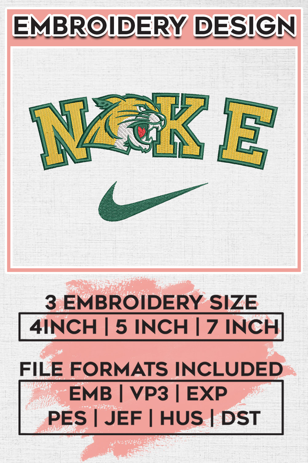 Nikee Northern Michigan Wildcats Football Team Logo Embroidery Designs, NCAA Northern Michigan Wildcats Machine Embroidery Files, NCAA Logo embroidery designs, Ncaa Northern Michigan Logo, Digital Download