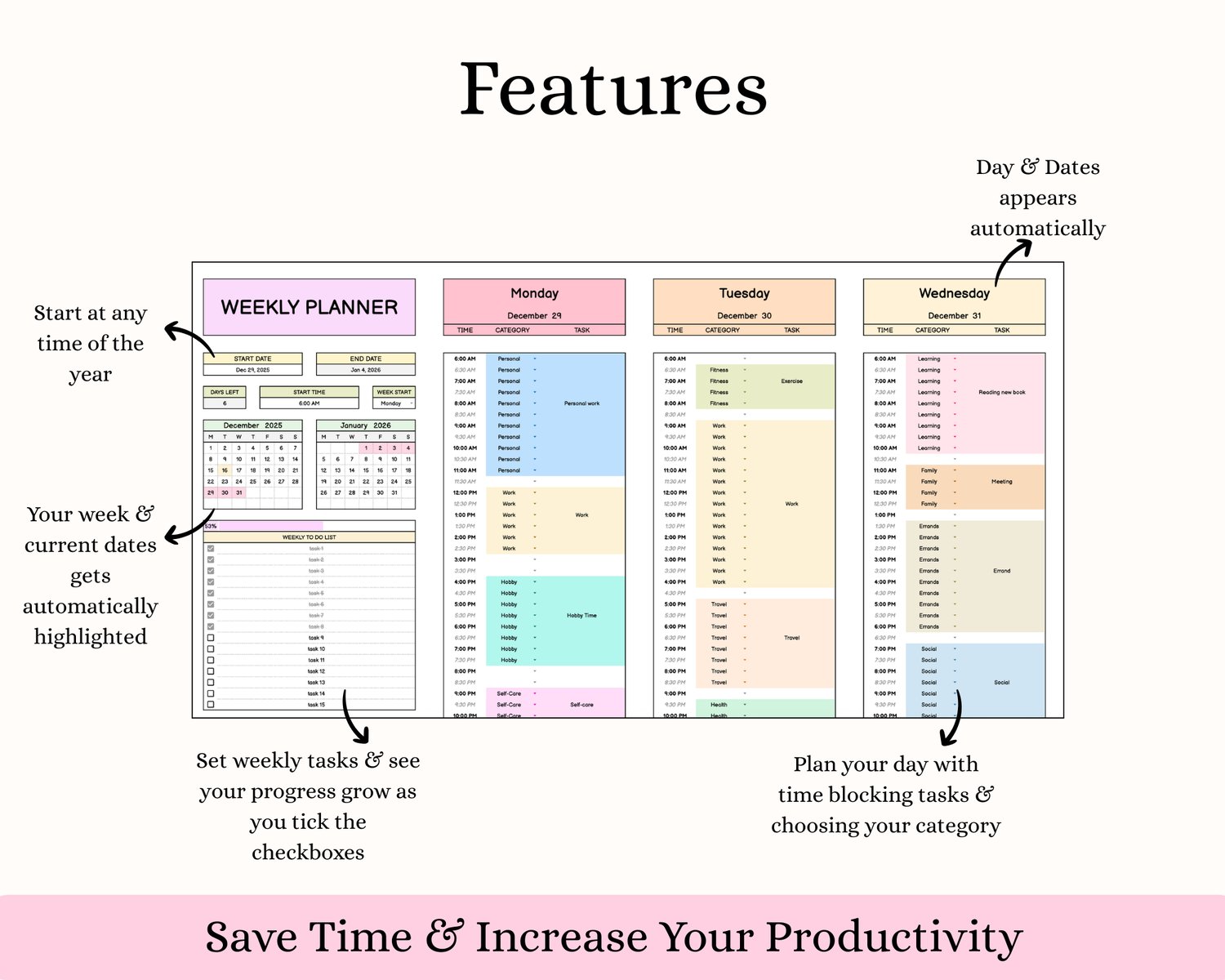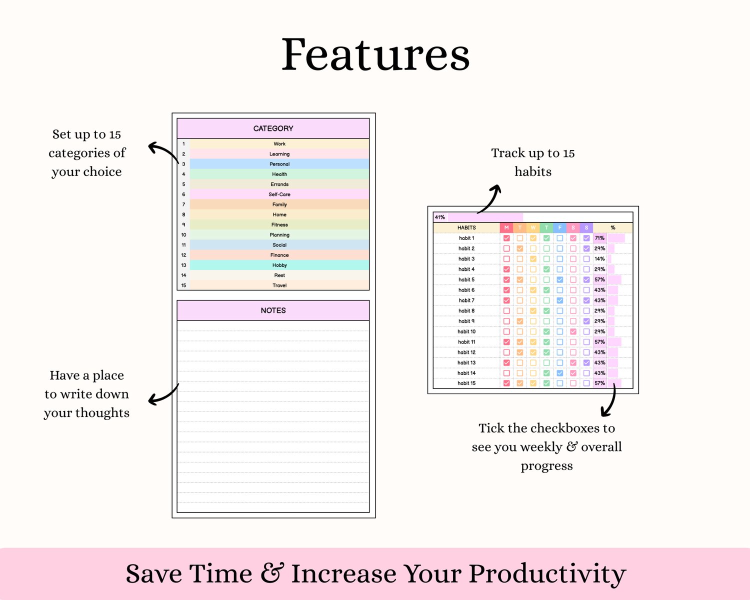 If you like seeing your days organized, your tasks checked off, and your progress actually visible, this Daily & Weekly Planner was made for you.