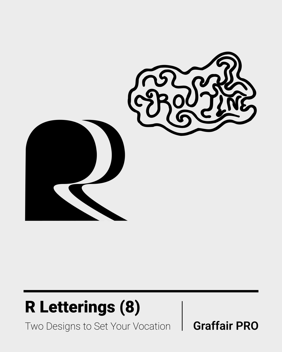 R Letterings (8): The 8th set of two original "R" logo lettering designs to edit and evolve your typography on your visual branding project. These letterings are part of the "800 SVG Letterings" bundle, which also contains 800 other exceptional designs.