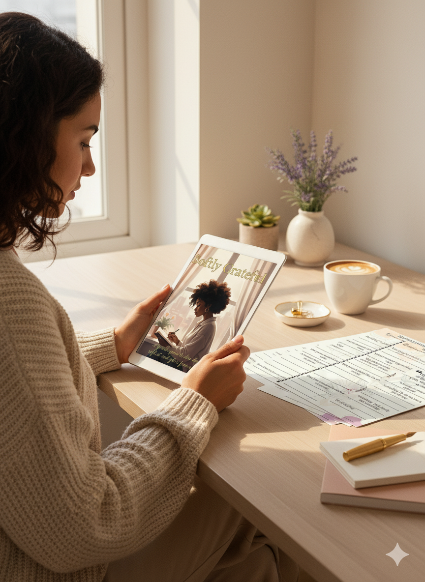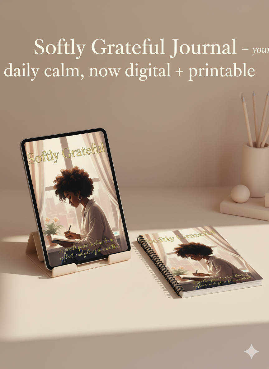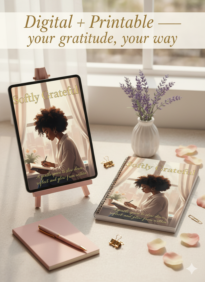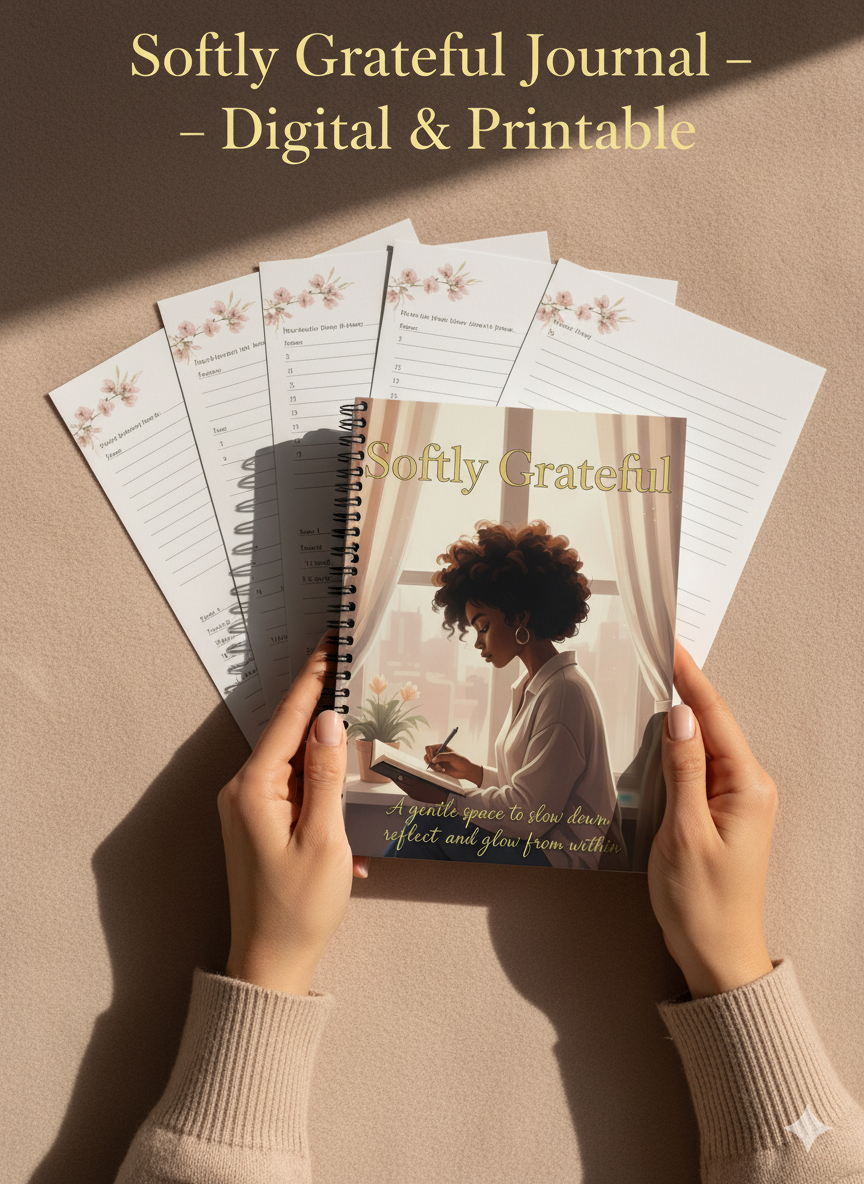 Softly Grateful Journal | Feminine Gratitude & Self-Care Journal for Women | Digital + Printable Mindset Journal for Daily Positivity & Manifestation