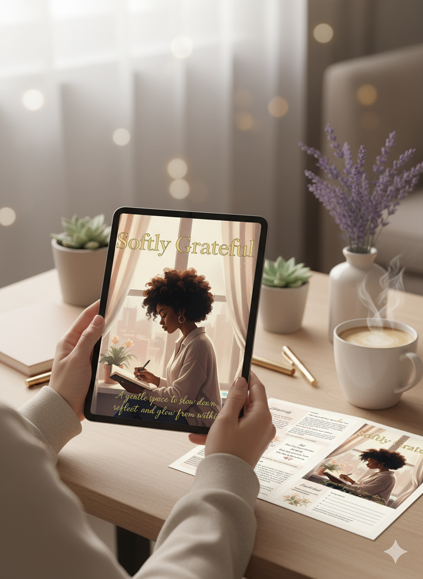 Meet Softly Grateful — your cozy, confidence-boosting gratitude journal that’s here to help you romanticize your life, heal your heart, and slay your self-care routine ✨