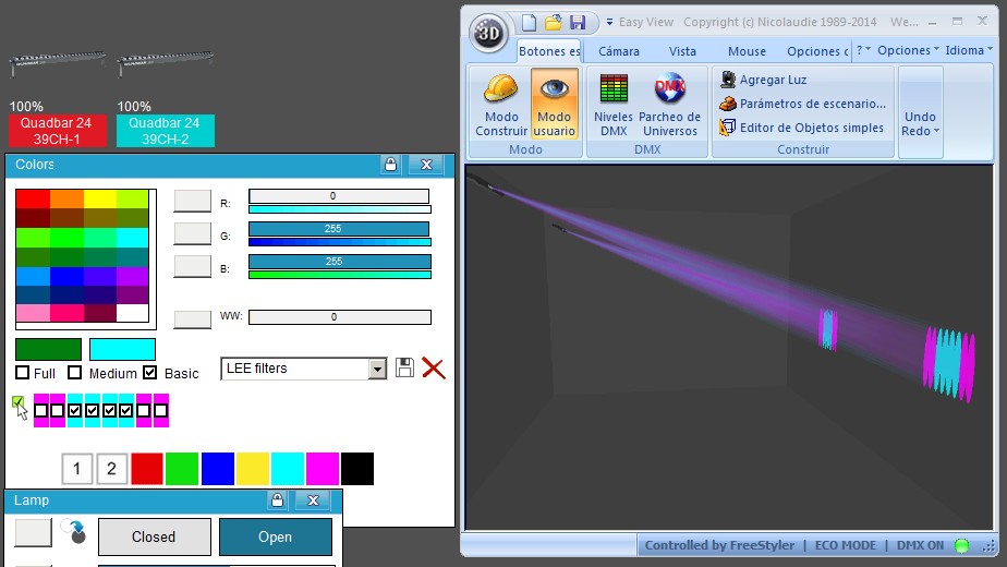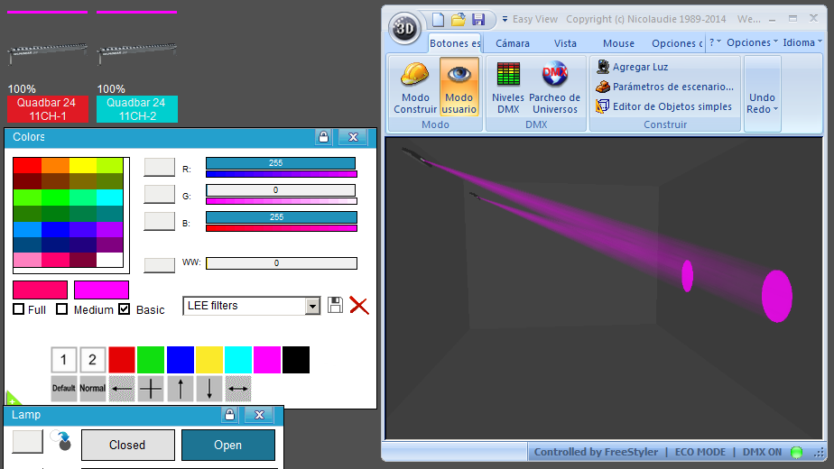 Esta Librería SSL2 está optimizada para trabajar con Magic 3d Easy View. Es decir para ver una representación 3D de las secuencias que estemos realizando con Freestyler, QLC+ o cualquier otro soft que se conecte con Magic 3d.