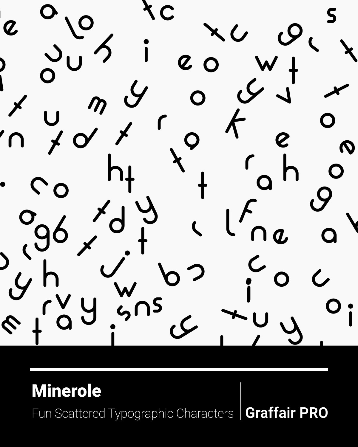 Minerole: A typographic composition designed like a pattern by rounded geometric letters, based on PVF_Prosper Typeface found at CYN Fonts. Its scattered style showcases a fun style while the minimal optical point of view calibrates the balance with a sophisticated manner.