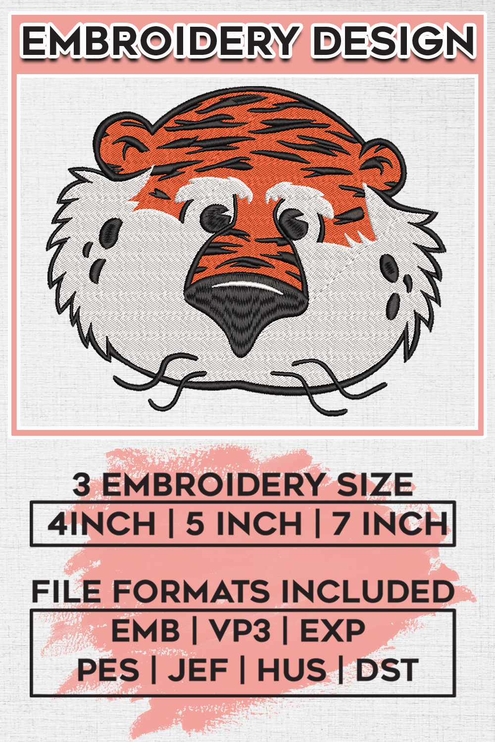 Auburn Tigers NCAA College Football Team Head Mascot Logo Embroidery Designs, NCAA Auburn Tigers Machine Embroidery Files, NCAA Logo embroidery designs, NCAA Auburn Logo, Digital Download