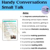 - to improve communication by discussing various topics related to small talk, reactions, getting to know somebody, and meetings