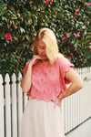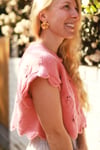 My inspiration for this design was sweet and simple! Guava fruit! This tropical fruit brings to my mind hot, humid summer in a rainforest. I transferred its succulent flesh into a lace stitch pattern and framed in charming wavy edges to create a truly jolly top for summer.