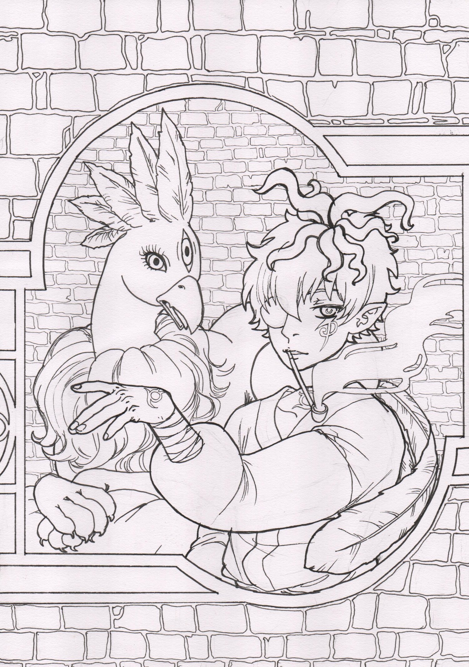 This features my interpretation of Kubinashi, a demon from japanese folklore who has no neck (literally and physically).
