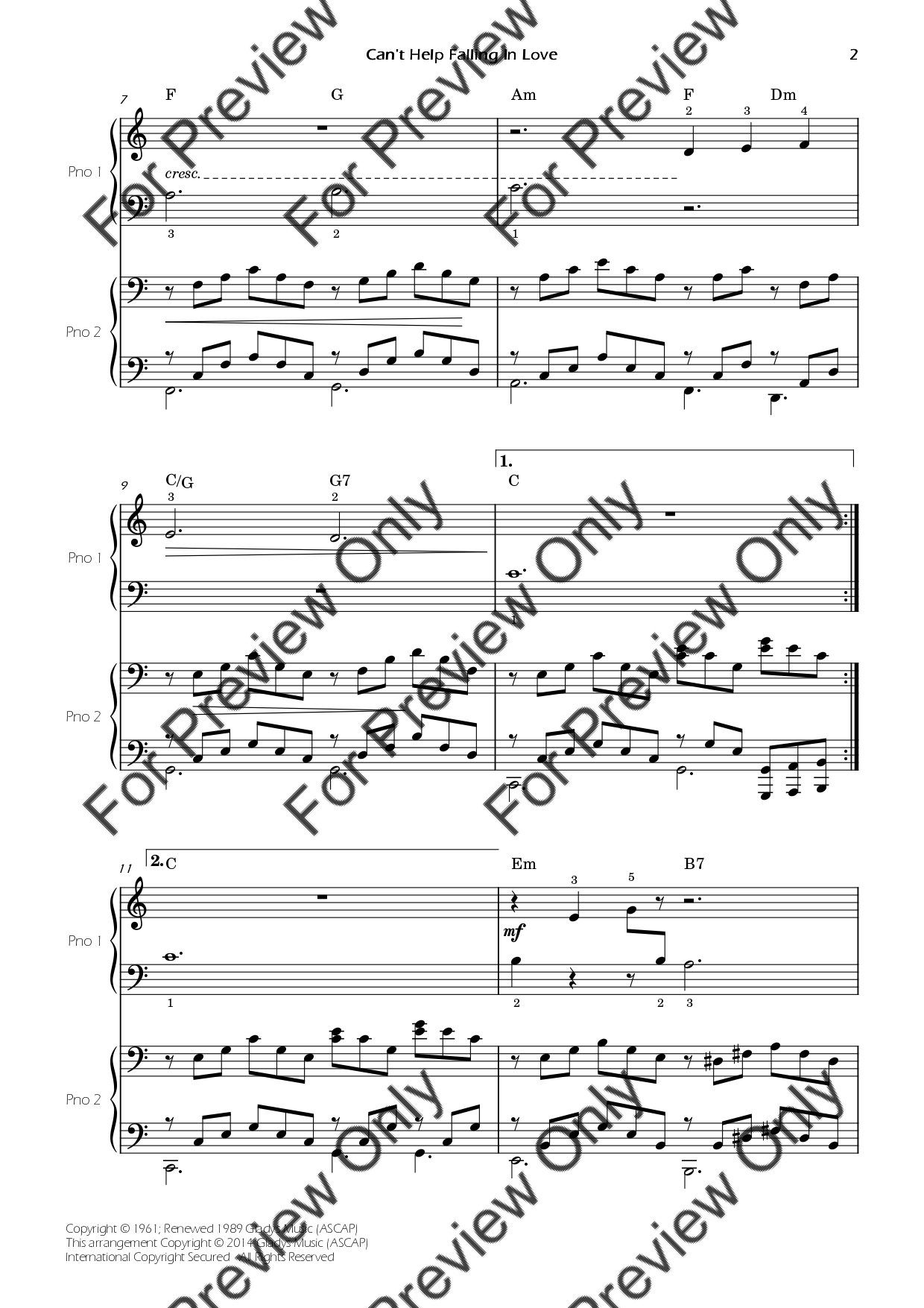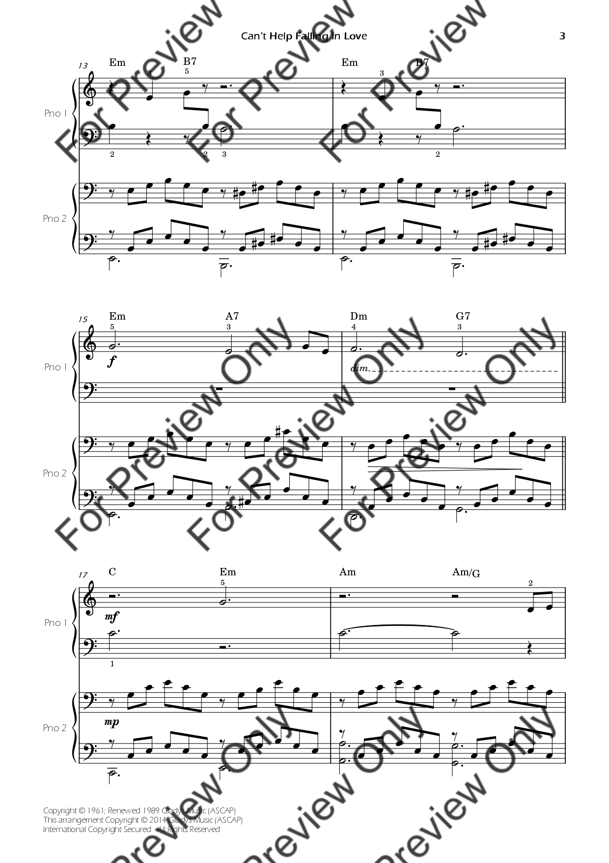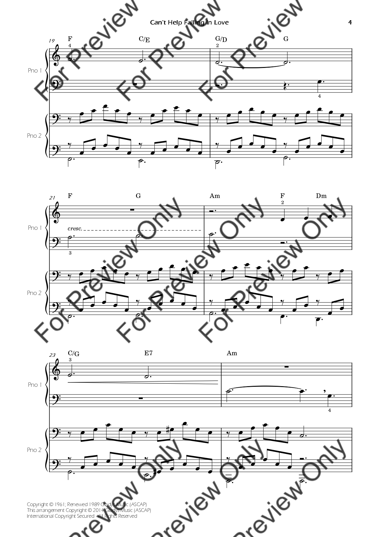 Can't Help Falling In Love by Elvis Presley. Arrangement for Beginner/Easy Piano Four Hands. With Full Score and Individual Parts. Have fun!