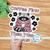 Coffee First Then Your Bullshit Graphics, Transparent PNG, Panels and Stickers, Raccoon, Funny Swear Words
