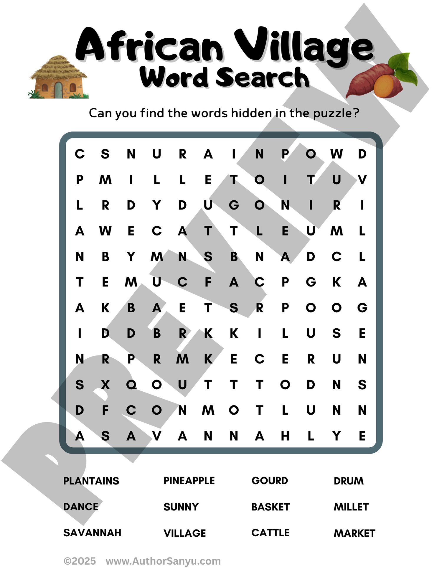 African Village Word Search Puzzle for Kids (Ages 7–10)
