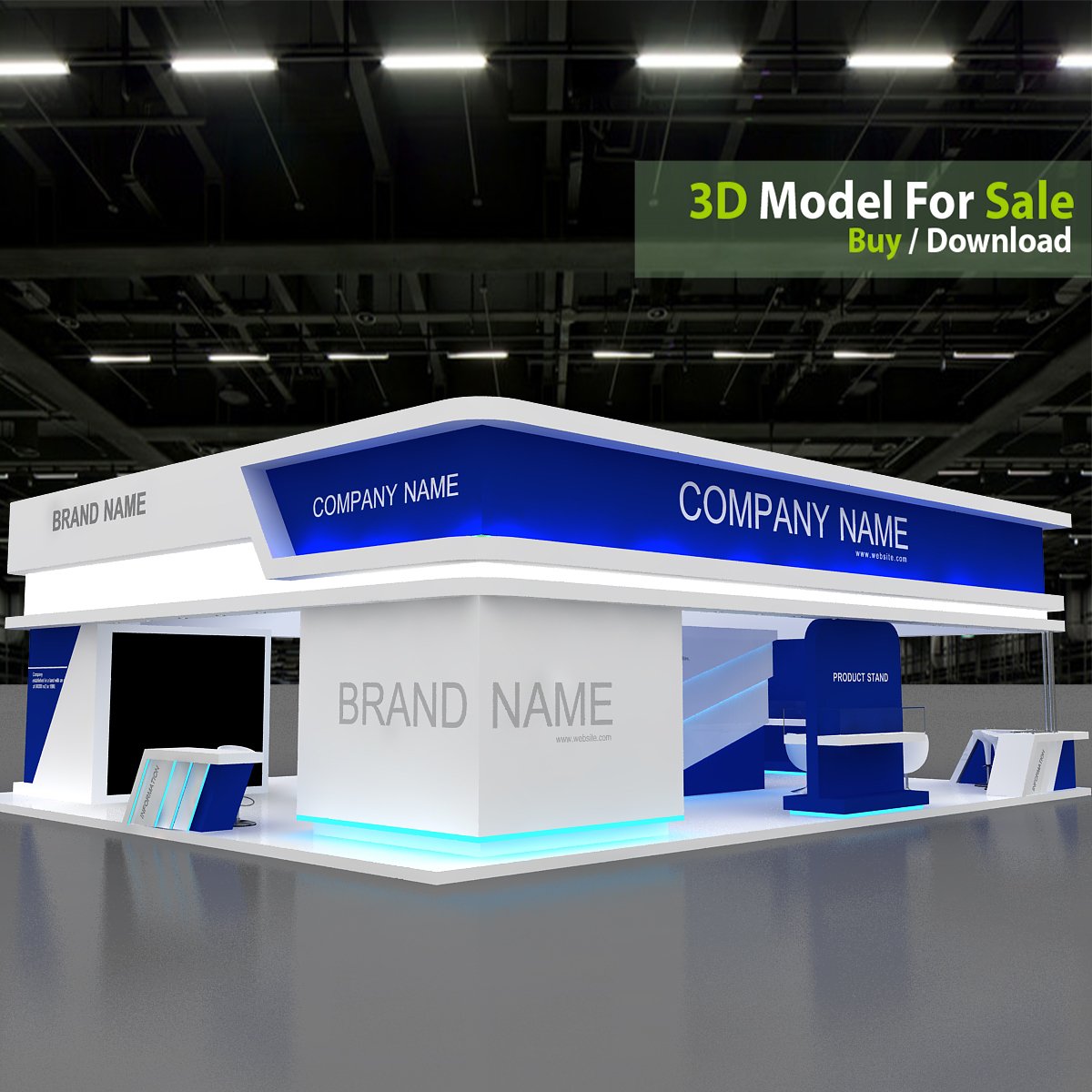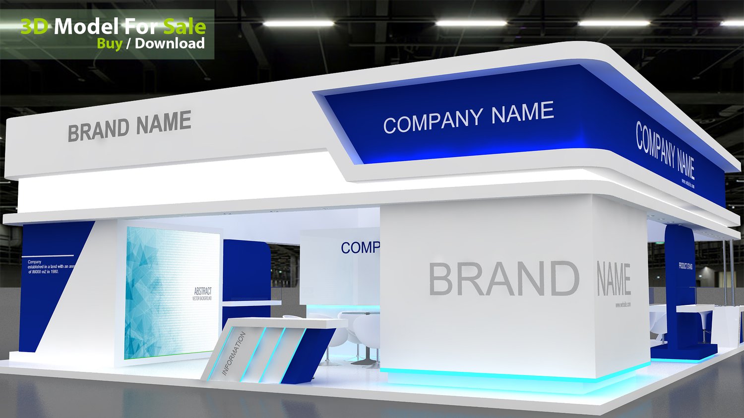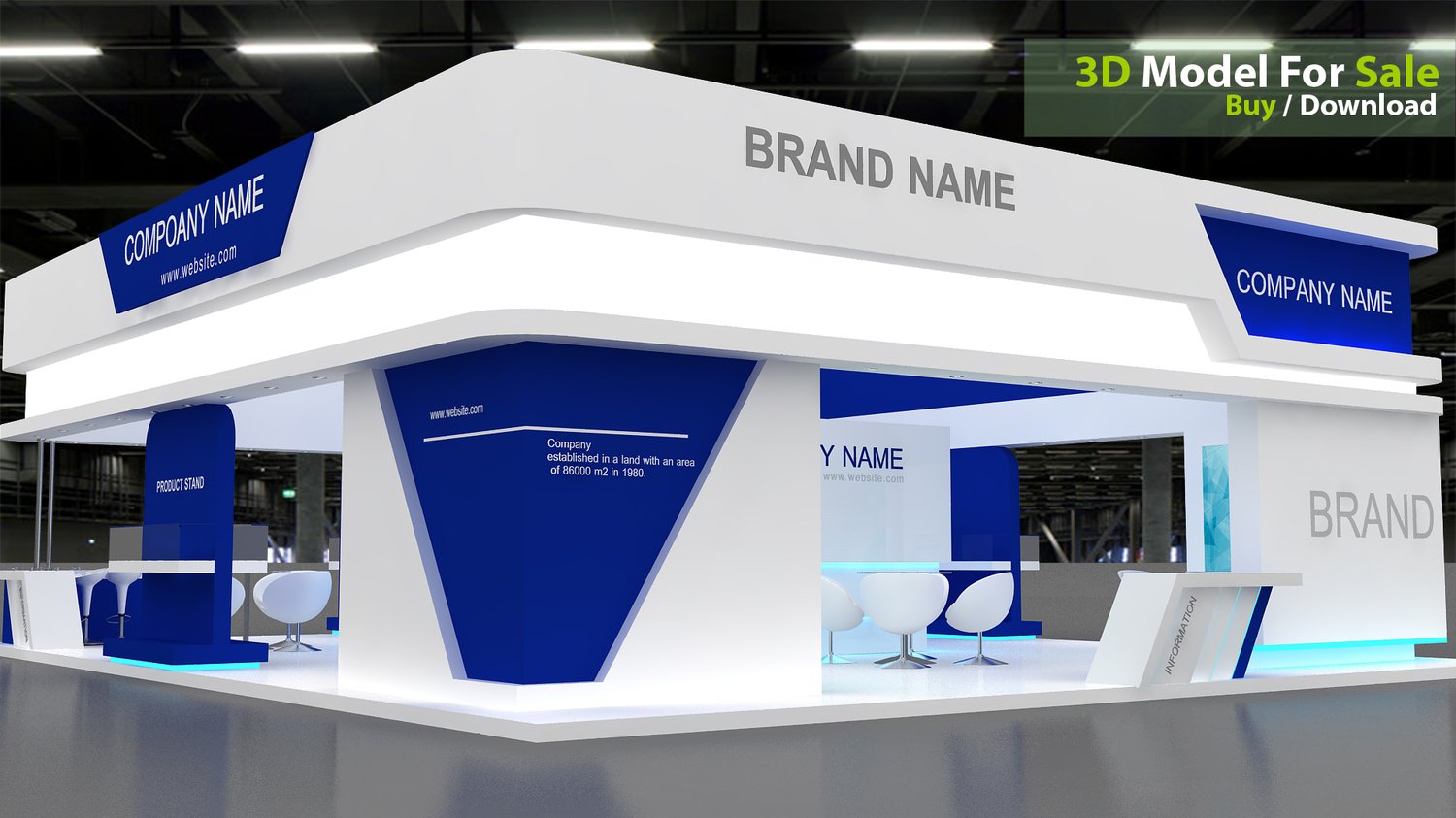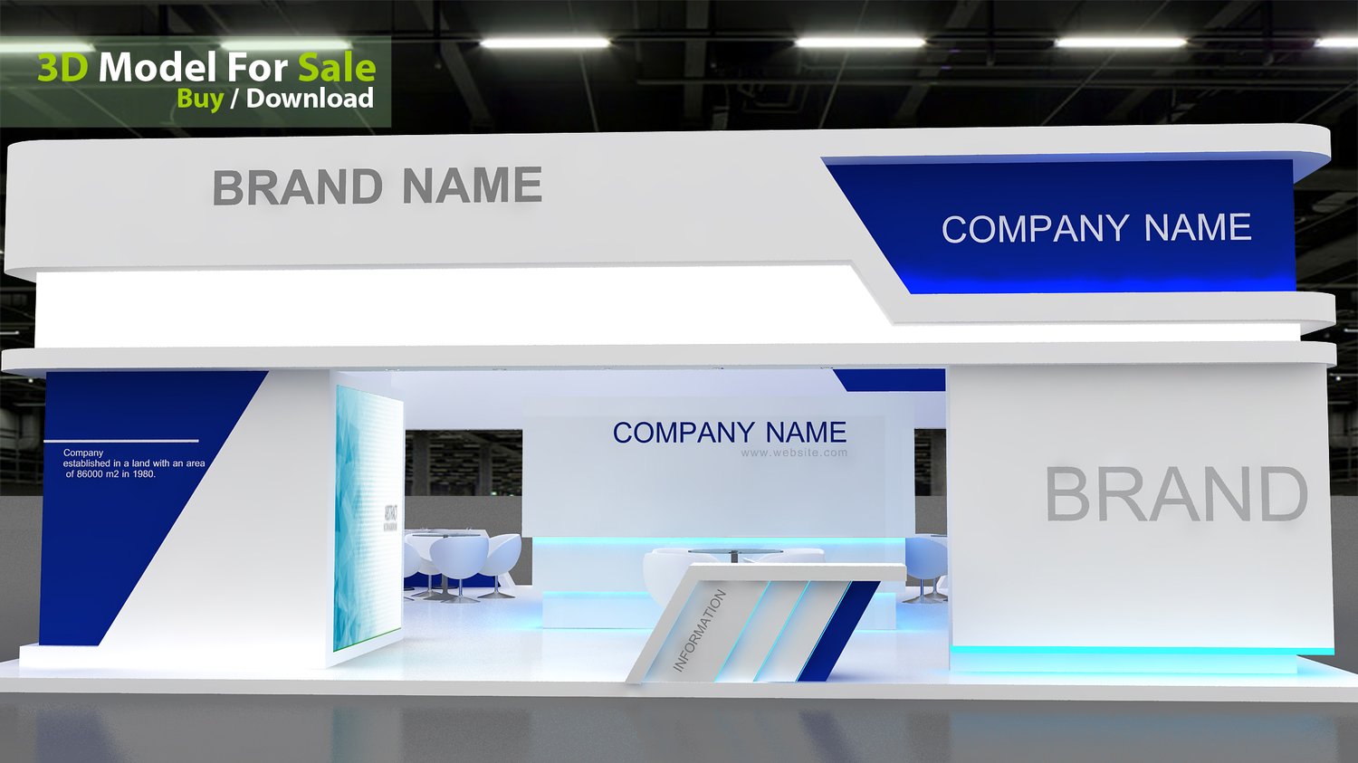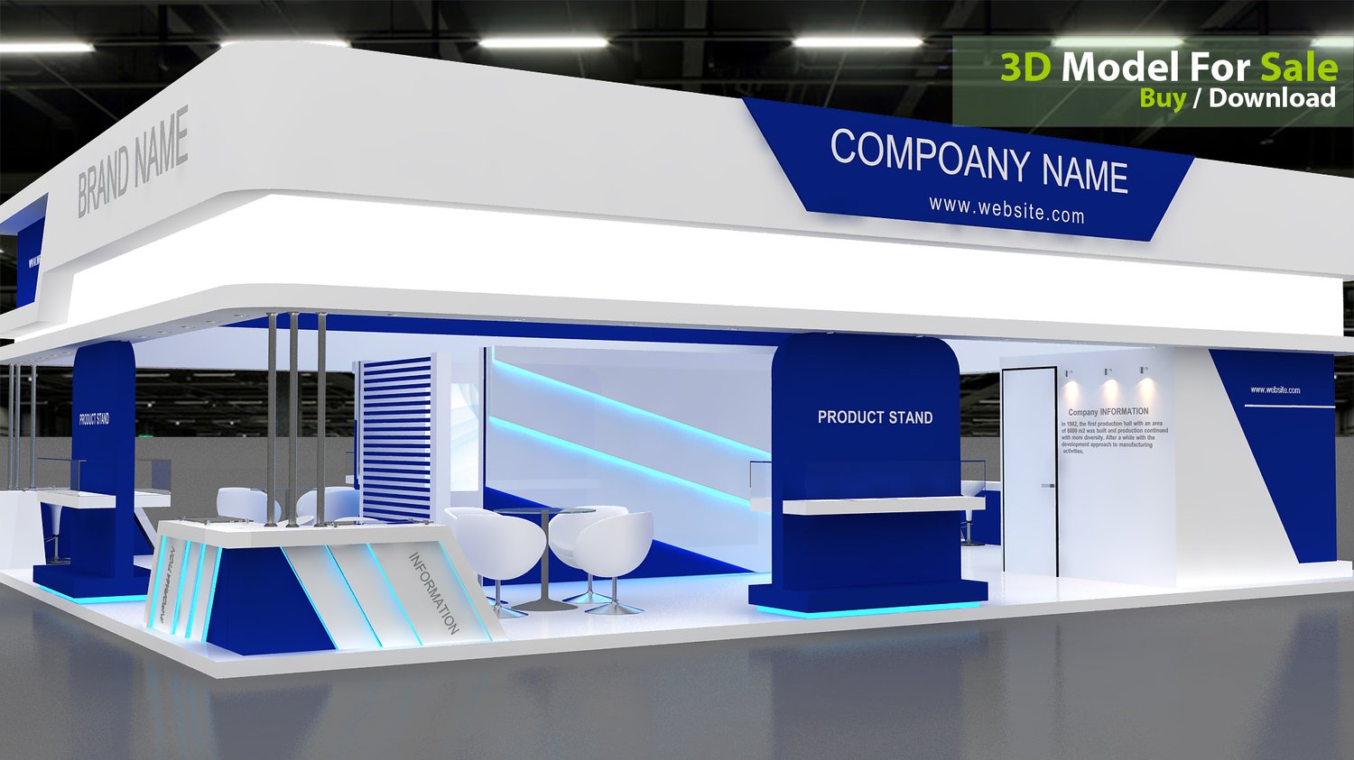 This professional 3D booth model is designed for exhibitions, trade shows, expos, fairs, and event displays.