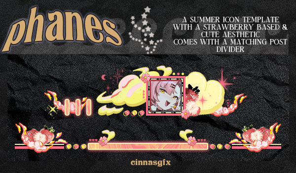 A summer icon template & post divider with a strawberry & cute aesthetic. There are a few blockquotes on this template while being wide enough to cover the post width. The image and psd coloring ( phanes ) used in the preview are not included with the psd file. Easy to use if you're familiar with the following: smart objects, layer styles and layer masks.