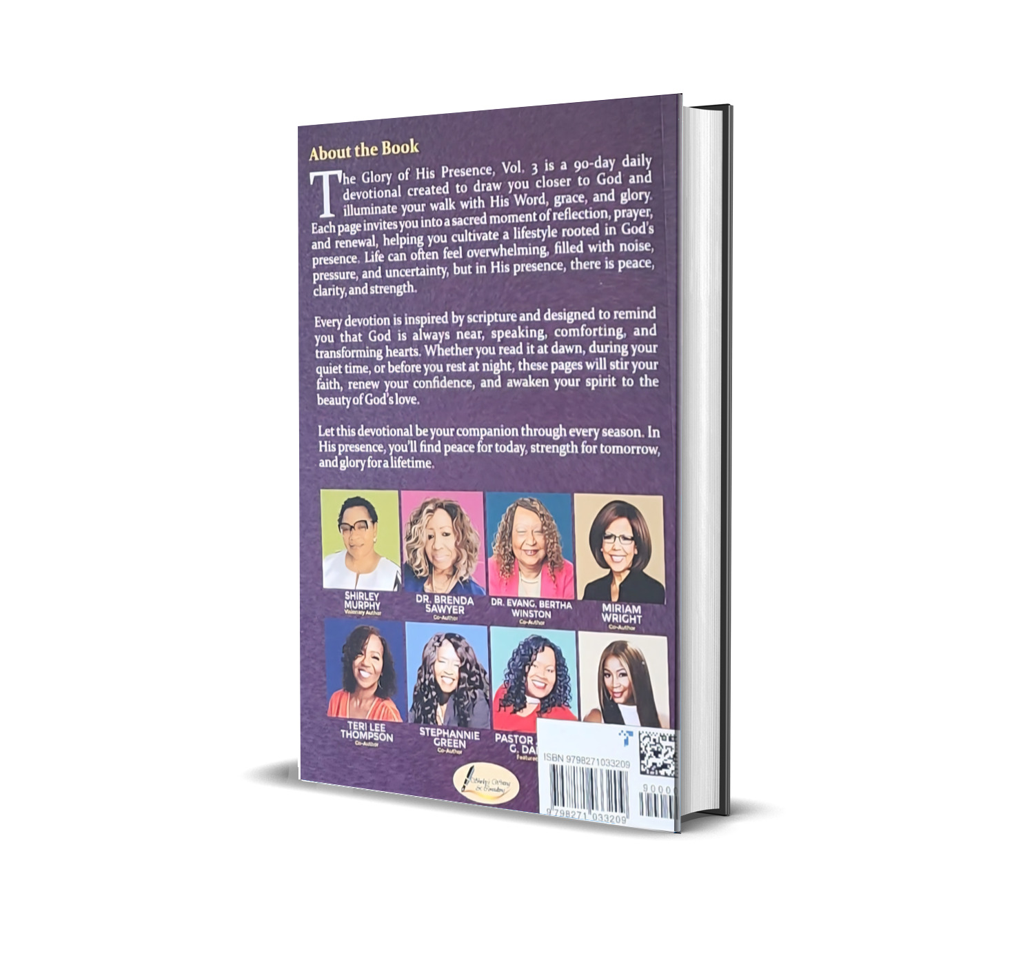 The Glory of His Presence, Vol. 3 is a 90-day daily devotional created to draw vou closer to God and illuminate your walk with His Word, grace, and glory Each page invites you into a sacred moment of reflection, prayer, and renewal, helping you cultivate a lifestyle rooted in God's presence. Life can often feel overwhelming, filled with noise pressure, and uncertainty, but in His presence, there is peace, clarity, and strength.