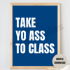 Take Yo Ass To Class Print Preppy College Student Motivational Quote Poster Blue White Dorm Decor Printable Wall Art Digital Download JPEG