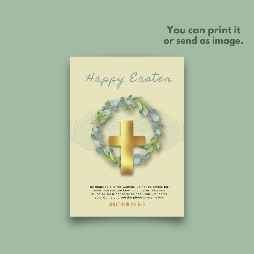 This Simple Christian Happy Easter Card is perfect for sharing the joy of April’s Easter celebration with your loved ones. Featuring a beautiful Matthew 28:5-6 Bible reference, this printable and editable template allows you to personalize it with your text and send it as a heartfelt invitation or message. Download now and make this Easter even more special! 🕊️