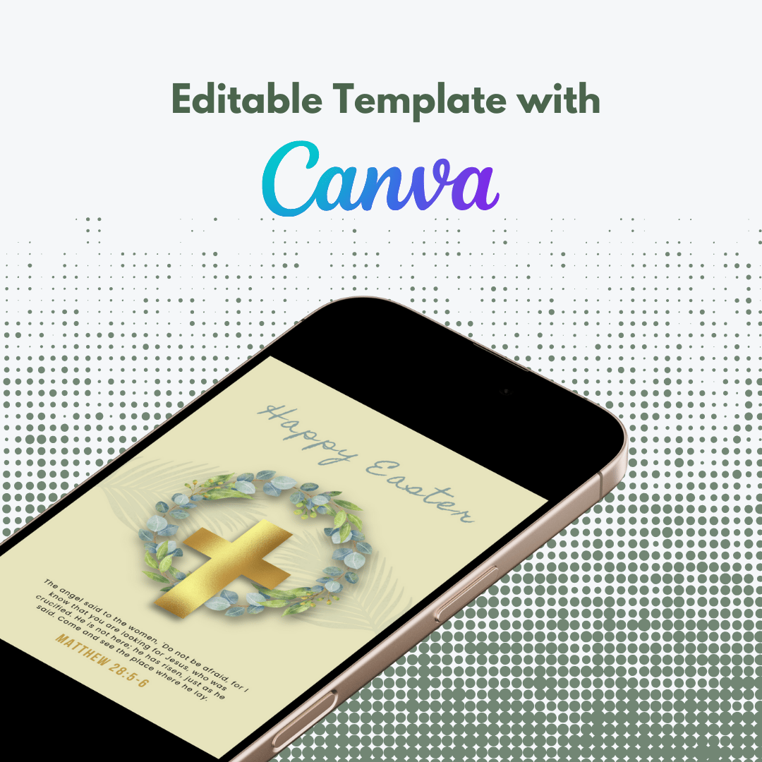 Simple Christian Happy Easter Matthew 28:5-6 Bible Reference Card Celebration Canva Template Design