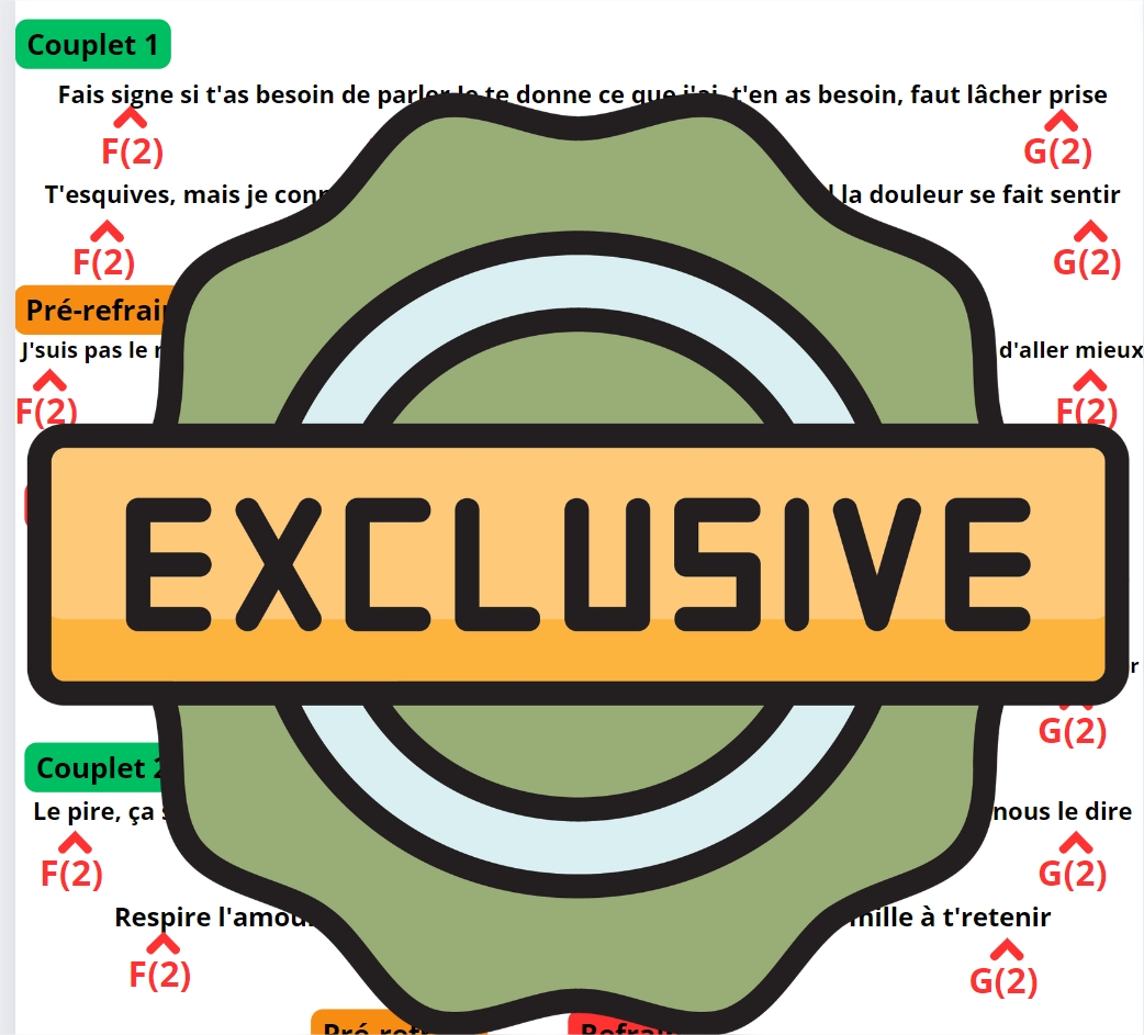 Fiche A4 des accords exclusive de "NOUS ON SAIT" de Pierre Garnier à la Yoann Cammino.