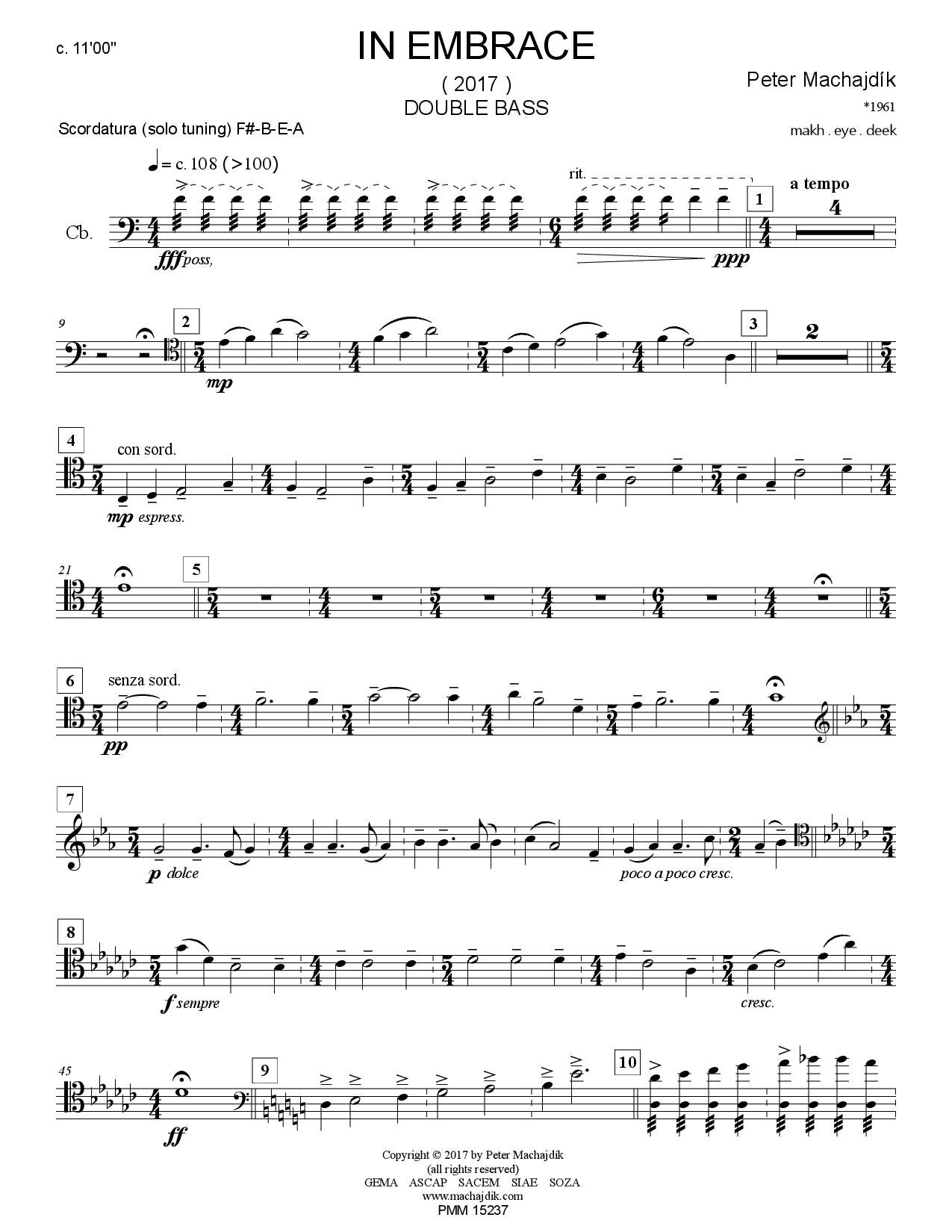 Peter Machajdík: IN EMBRACE for double bass and piano (Digital Sheet Music) [score and parts]