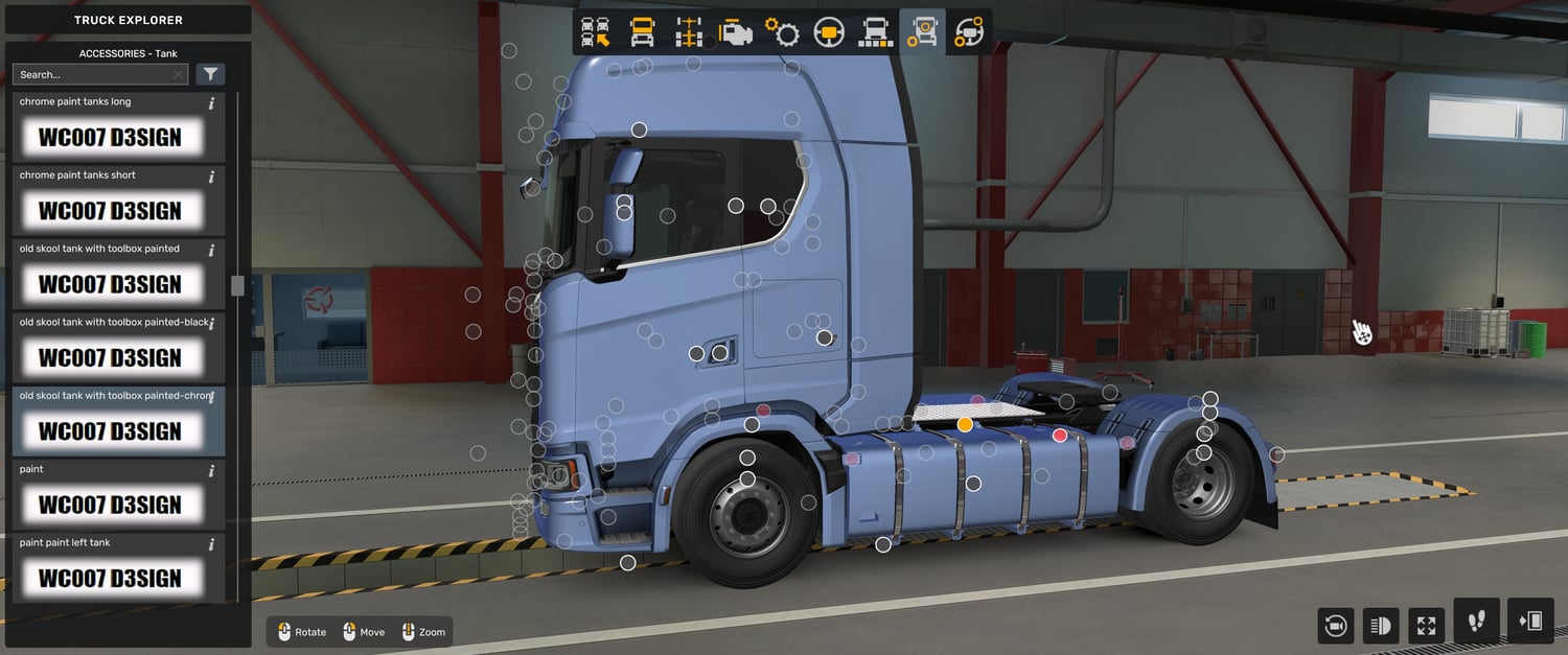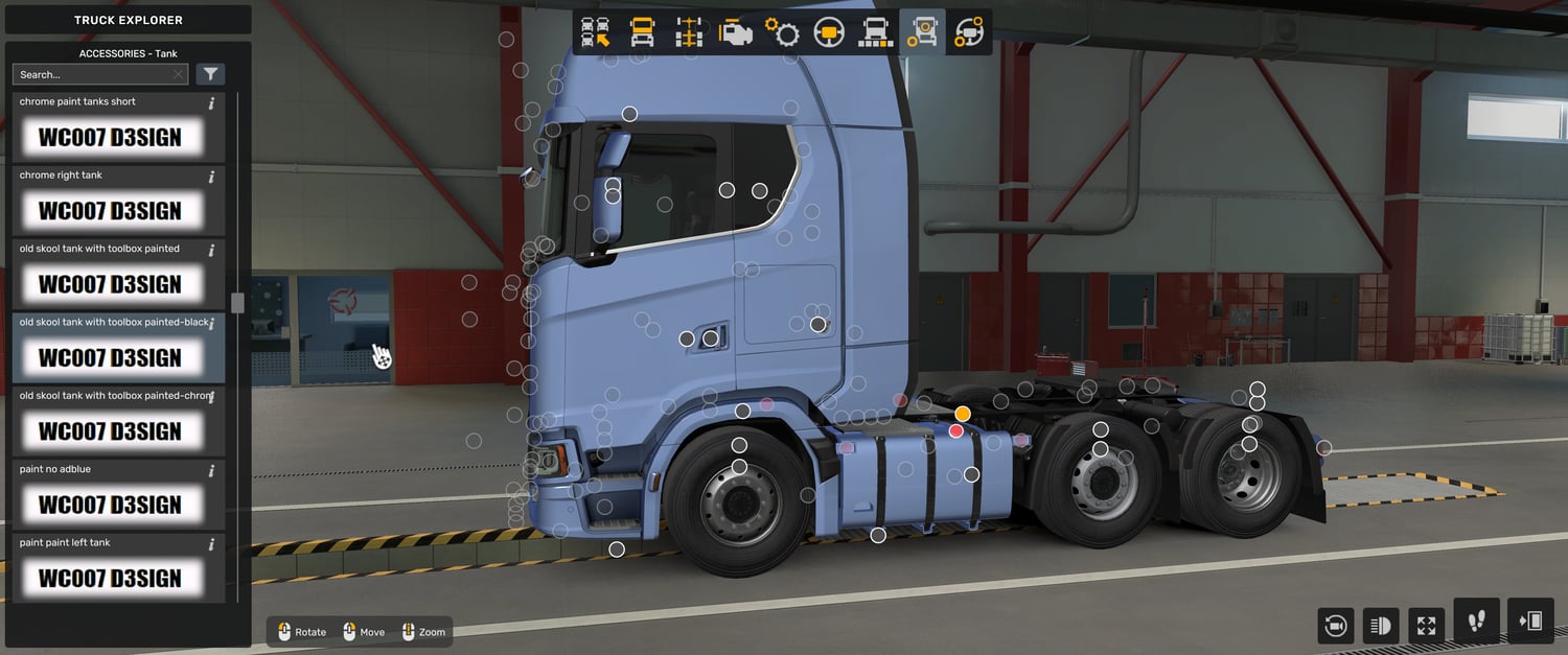 MOD description: Old style big left tank with right big toolbox for Scania NG 1.57 and new game versionf all chassis except 8x4 version