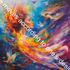 Life moves according to one’s desires, with vibrant colors and elements that symbolize freedom and happiness.