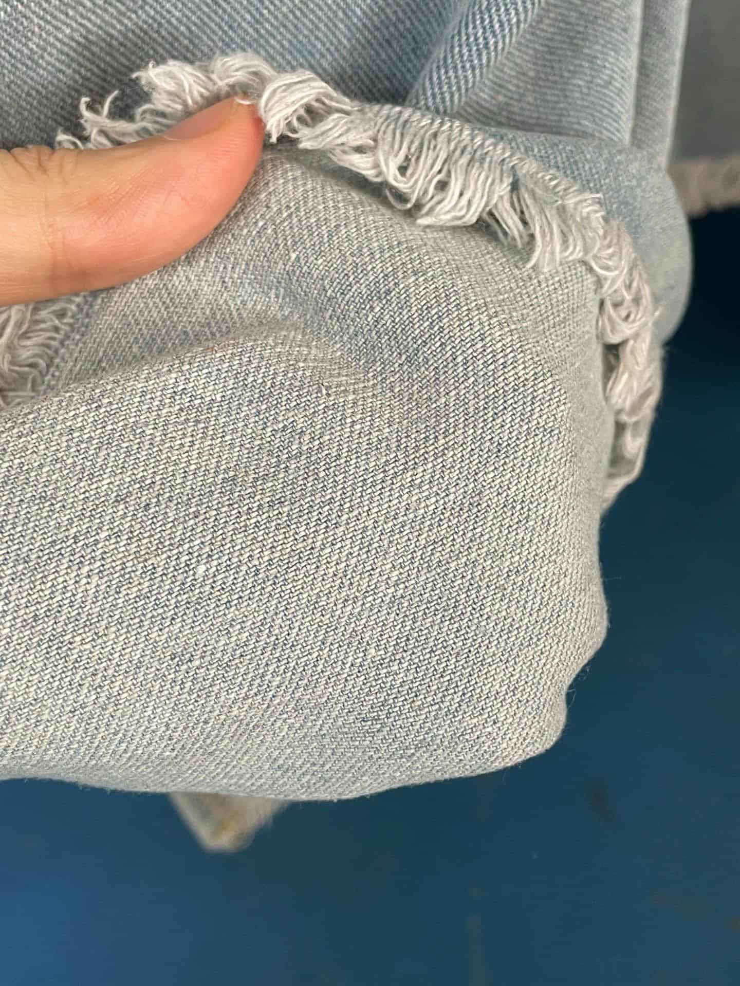 1.Extiende los jeans frente a ti, dejando que la tela caiga naturalmente.