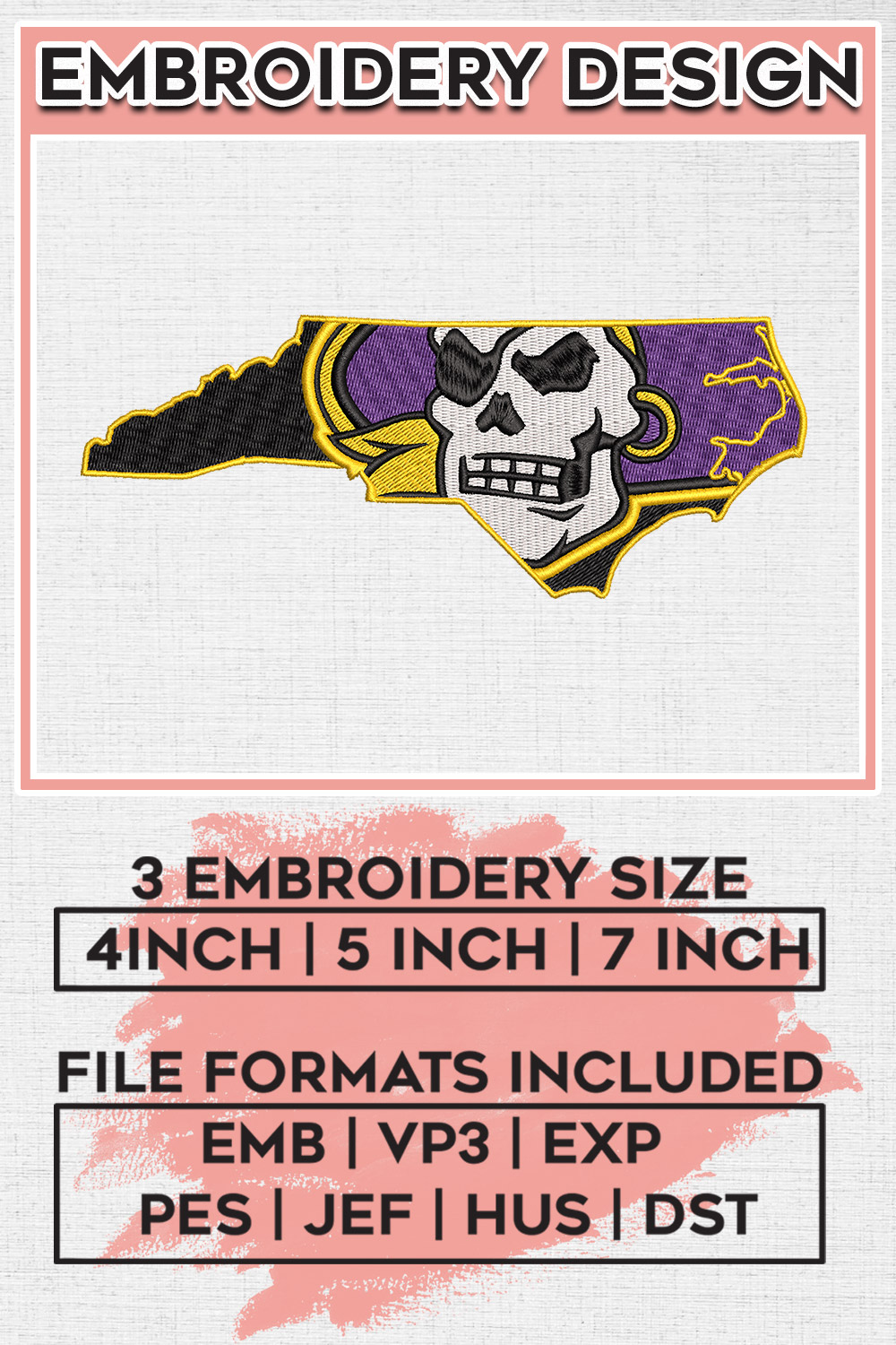 East Carolina Pirates Map Logo Embroidery Designs, NCAA East Carolina Pirates Machine Embroidery Files, NCAA Logo embroidery designs, Ncaa East Carolina Logo, Digital Download