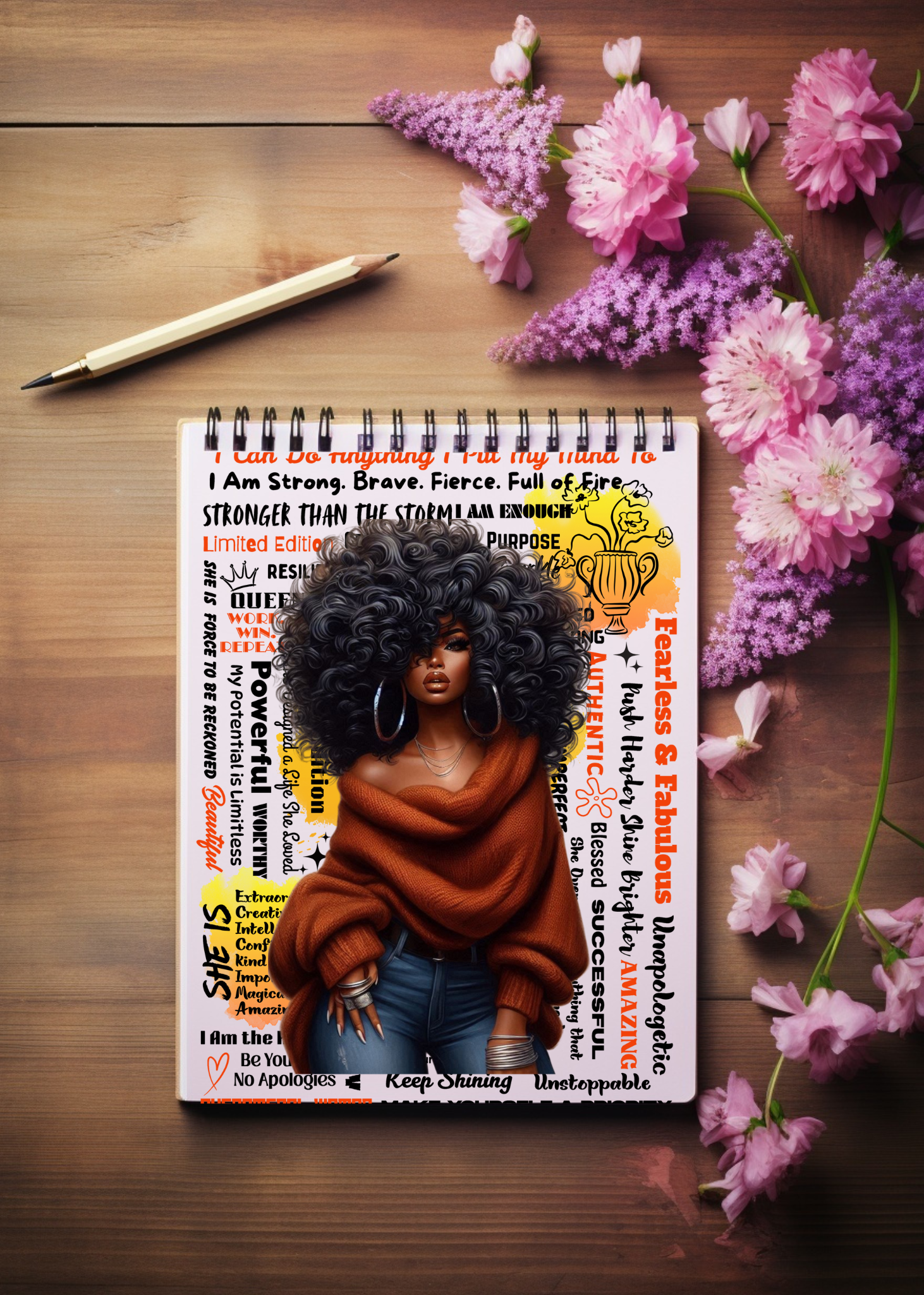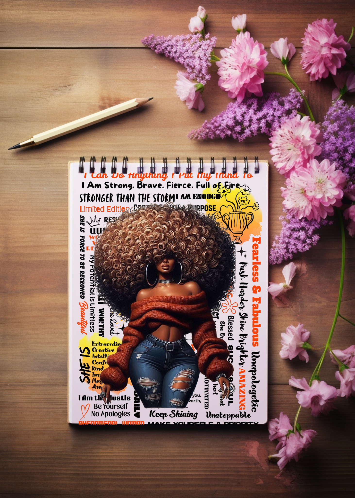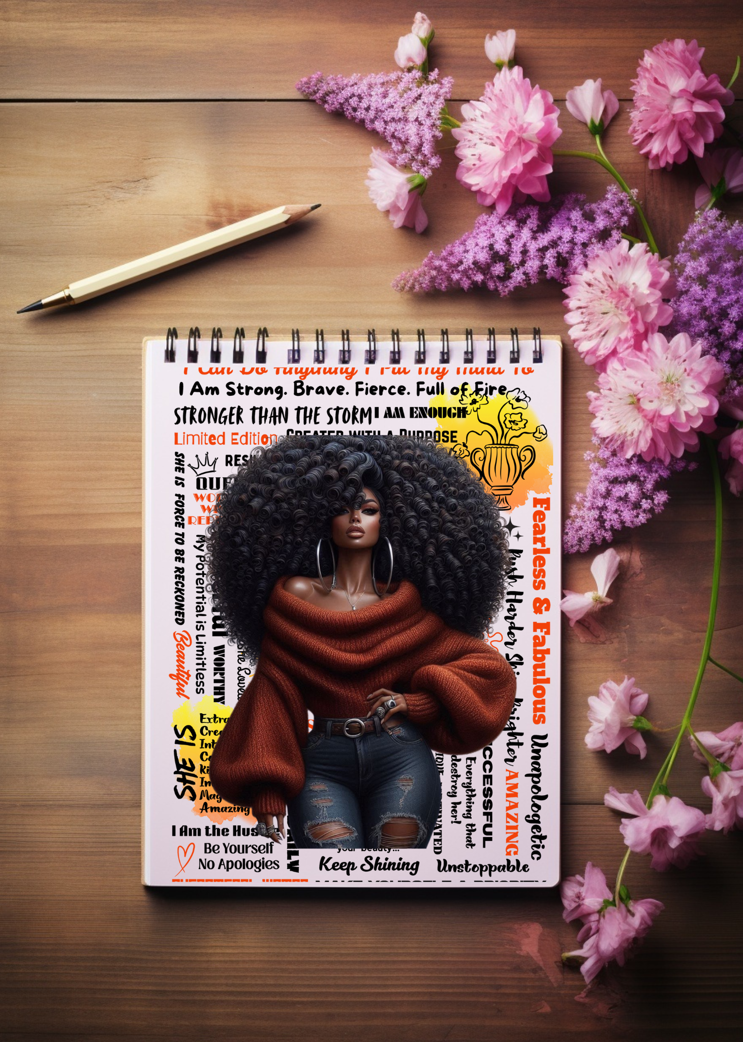 Transform your journals, planners, or digital notebooks with these bold and empowering cover designs! This 4-piece set features confident Afro-American women surrounded by affirmations and motivational quotesโperfect for anyone on a self-love, healing, or growth journey.