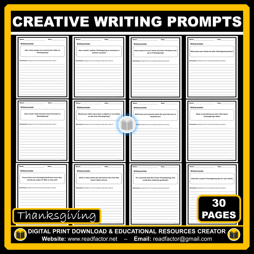 THANKSGIVING Writing Prompts Activities - 30 Worksheets