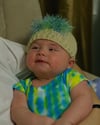 Preemie [0-3mo, 3-6mo, 6-24mo] to correspond with head circumference 10 [11, 13, 15]in (25 [27.5, 32.5, 37.5]cm) Shown in size 3-6mo (green) and 6-24mo (blue).