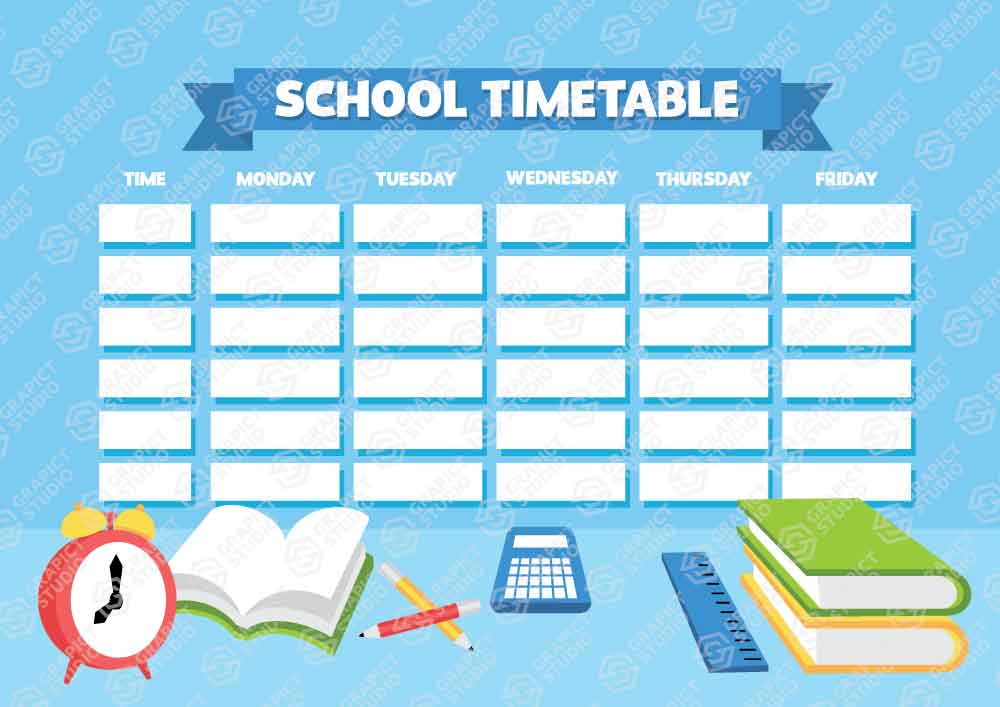 DIY print template school timetable. Print a template of school timetable at home, impress your children and make their day cheerful. Back to school no more bored. A4 paper size.