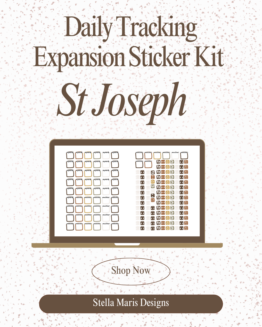 This printable daily expansion pack coordinates with the St. Joseph Monthly Kit and fits all three planner sizes (Vertical, Weeks, Cousin). Includes extra headers, icons, and liturgical prompts for daily planning and reflection.