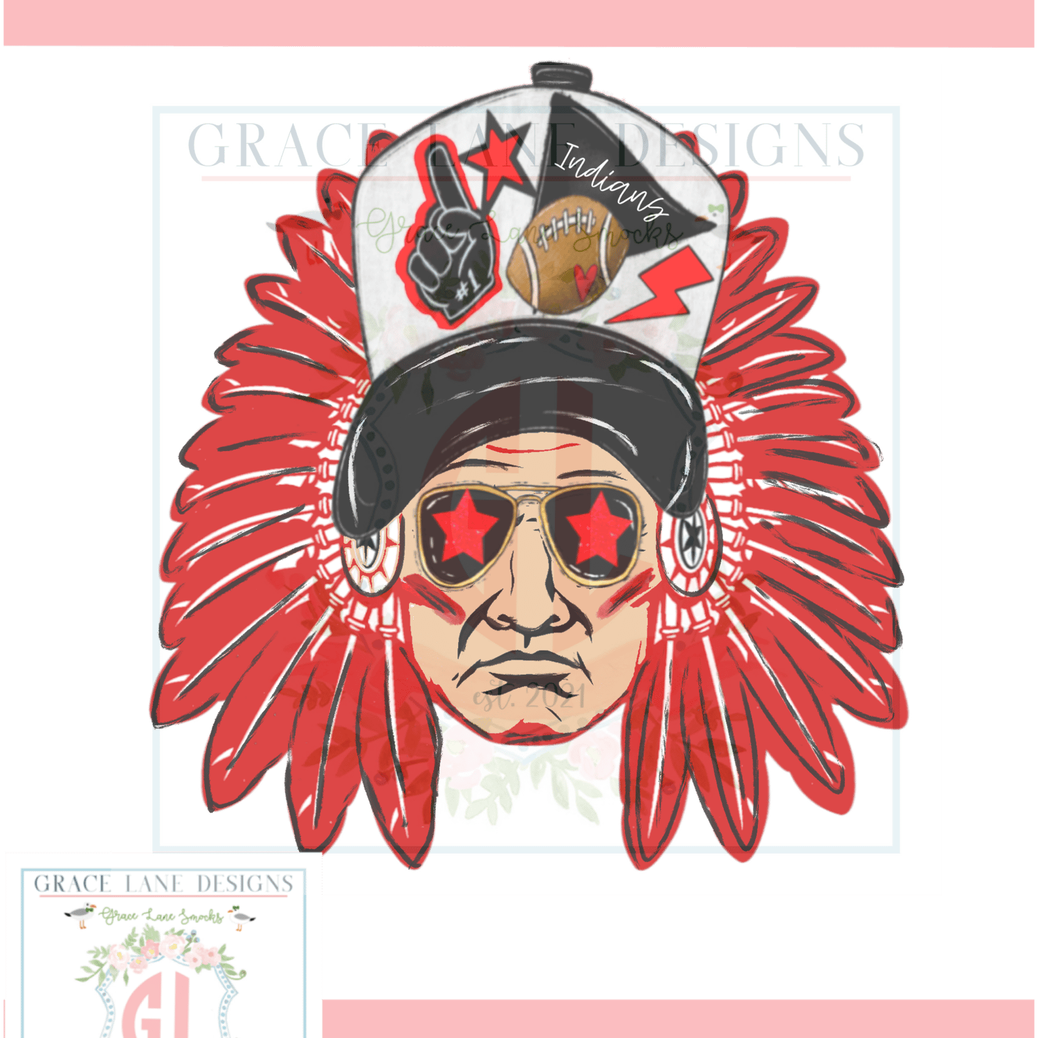 INDIAN RED BLACK Trucker Hat png Hand Drawn Procreate Digital Download Tailgate Football Game Cheerleader
